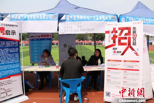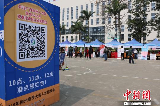 中新網(wǎng)柳州3月11日電 (林馨)11日,廣西柳州人才網(wǎng)在柳州市三中舉辦柳州春季大型人才招聘會。為了吸引求職者關(guān)注,柳州人才網(wǎng)在其微信公眾號發(fā)布900個紅包。部分用工單位在展板前打出“年薪數(shù)十萬,買房買車不是夢”等招聘標語。