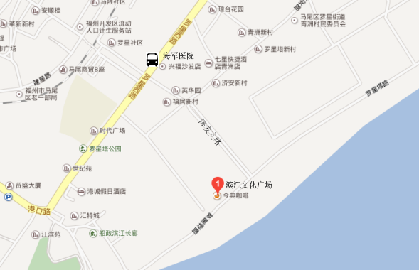 地點:馬尾區(qū)濱江文化廣場(羅星塔路,今典故事咖啡西餐廳旁。131路、73路、73路快線、兩馬航線定時班車海軍醫(yī)院站下車,由直行500米即到)。